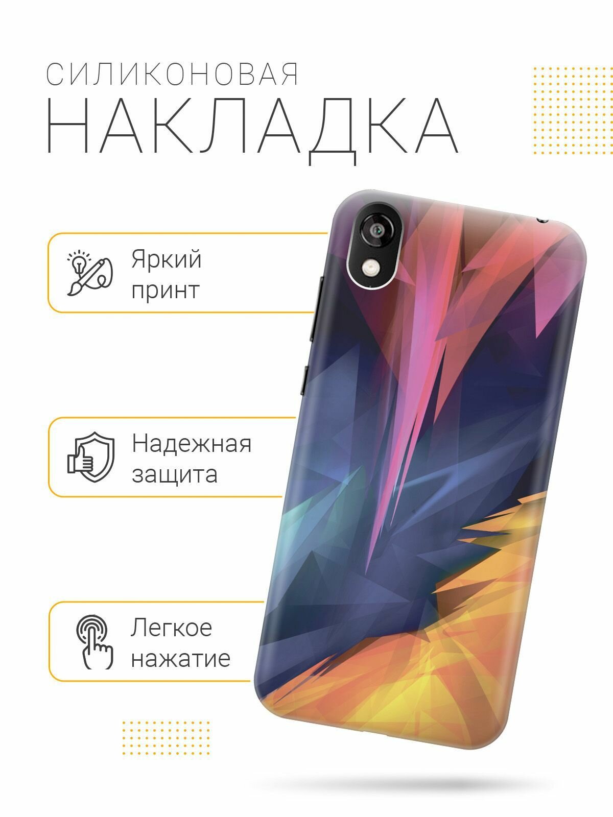 Силиконовый чехол на Honor 8S / Huawei Y5 (2019) / Хуавей У5 2019 / Хонор 8с с принтом "Розовый, синий, желтый" интересное: