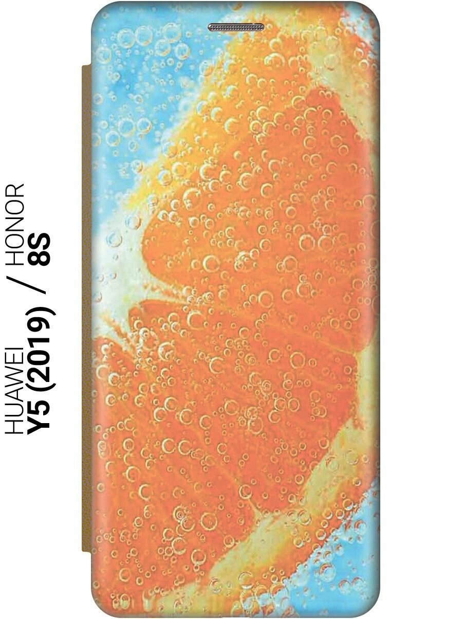 Купить Чехол-книжка на Honor 8S / Huawei Y5 (2019) / Хуавей У5 2019 / Хонор 8с c принтом "Долька апельсина" золотистый