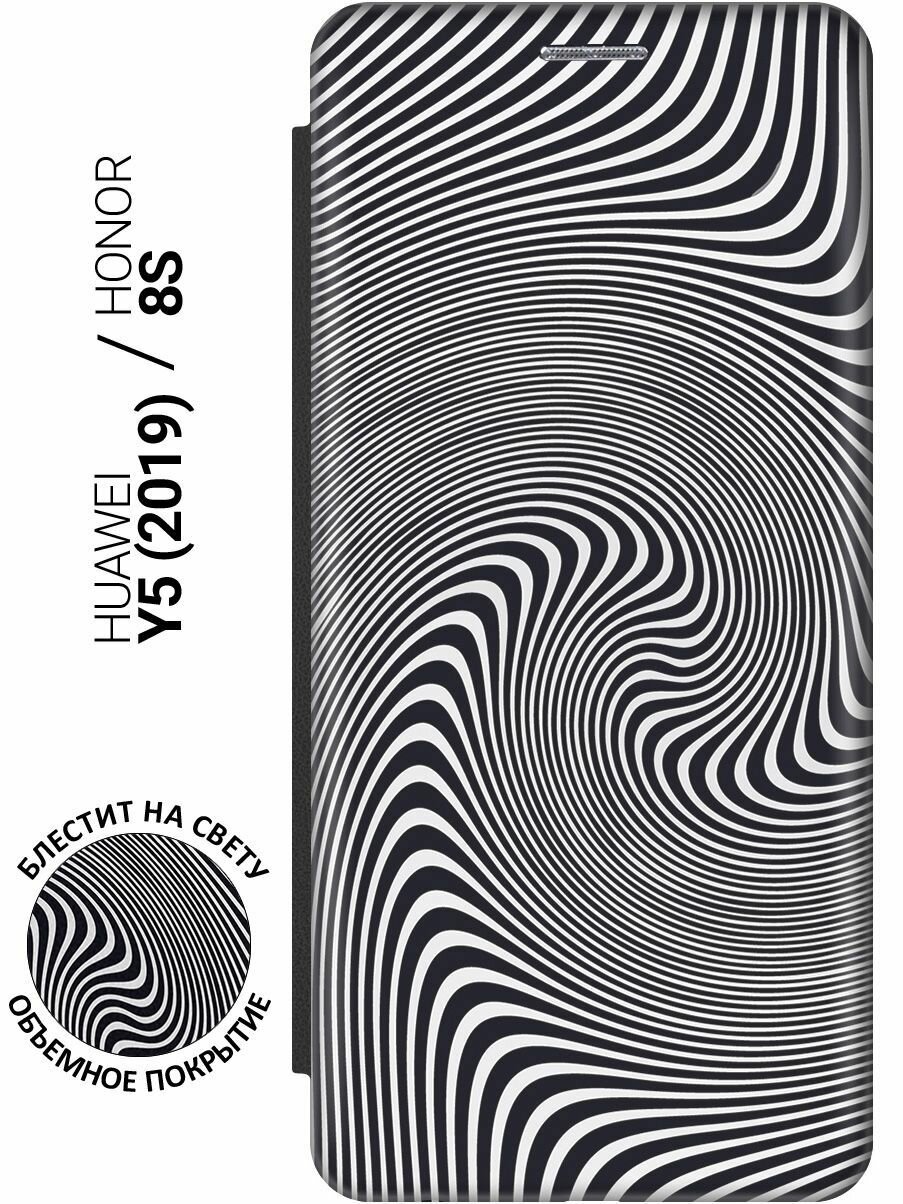Чехол-книжка на Honor 8S, Huawei Y5 (2019), Хуавей У5 2019, Хонор 8с c принтом "Черно-белая иллюзия" черный