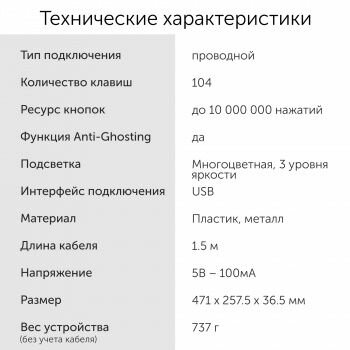 | Минусы: | влагозащиты нет как указано в описании , пролил пиво и Клава крякнула |