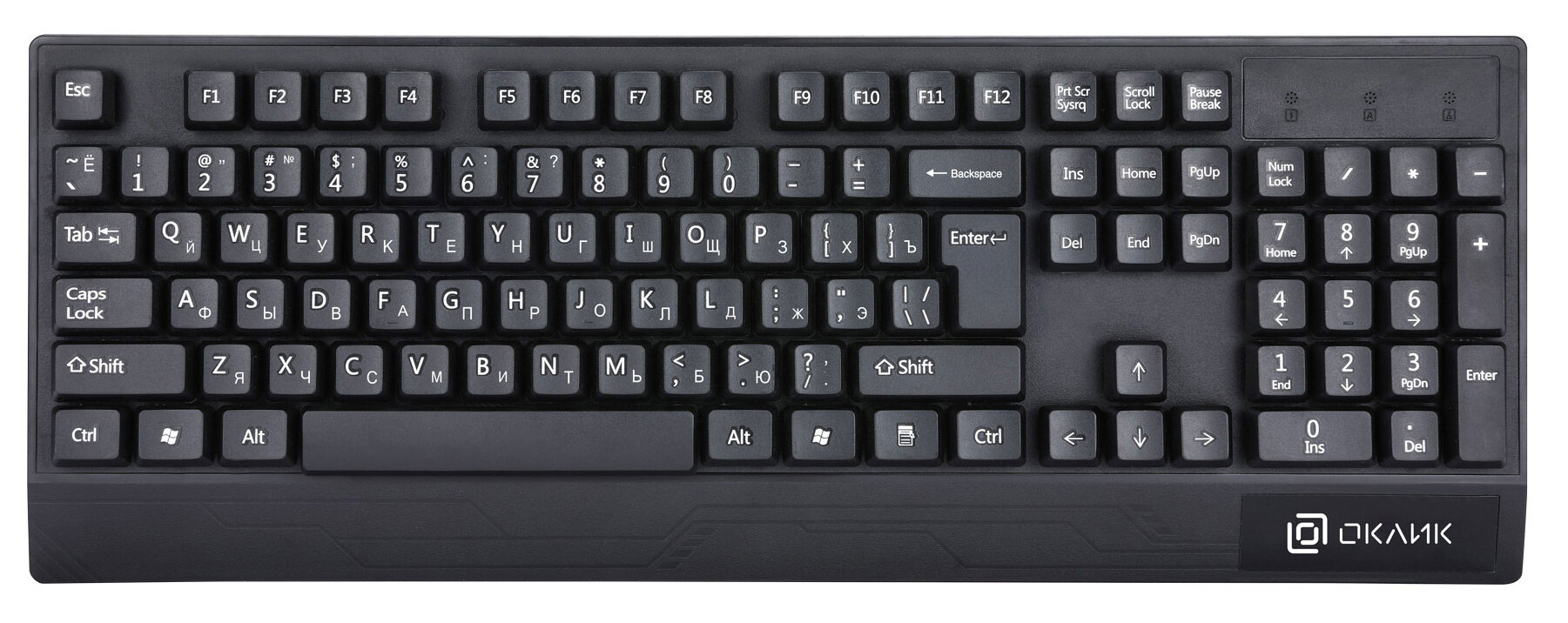 Клавиатура Оклик 115M черный USB подставка для запястий интересное:
