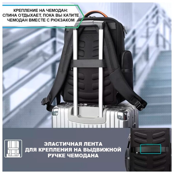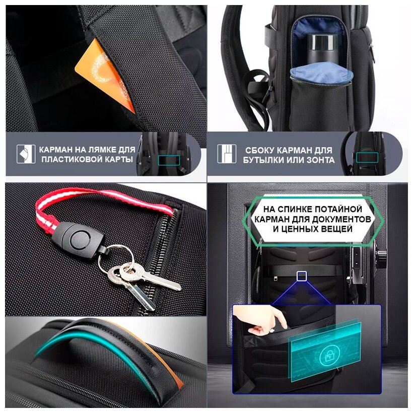 Рюкзак мужской городской дорожный вместительный 24л для ноутбука 15.6 Bopai Business Черный водонепроницаемый с USB для взрослых и подростков интересное: