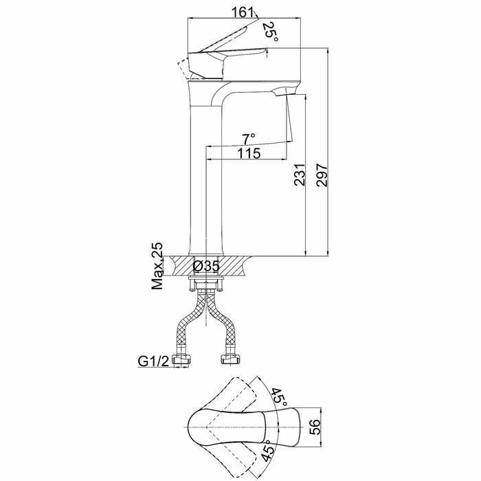 D&K Смеситель для раковины высокий DK Rhein Reisling (DA1272001)