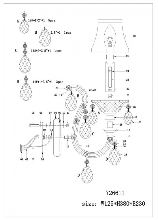 Lightstar 726611 Бра PRINCIA 1х40W E14 (основание, напатронник белый, кристалл прозрачный)