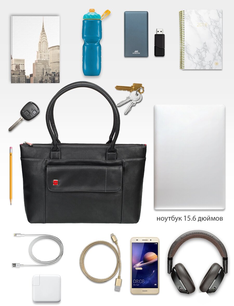 Сумка для ноутбука 15.6" Riva 8991 черный, искусственная кожа, женский дизайн