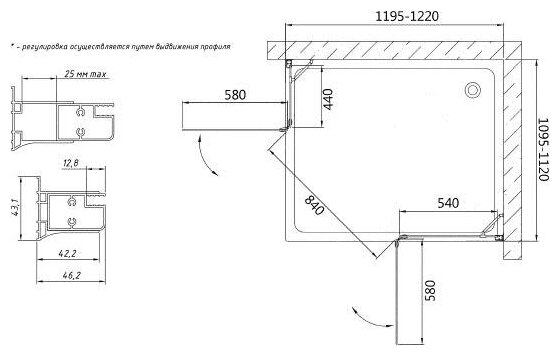душевой уголок Vegas Glass Душевой уголок Vegas Glass AFA-F 120*110 07 01 R профиль матовый хром, стекло прозрачное интересное: