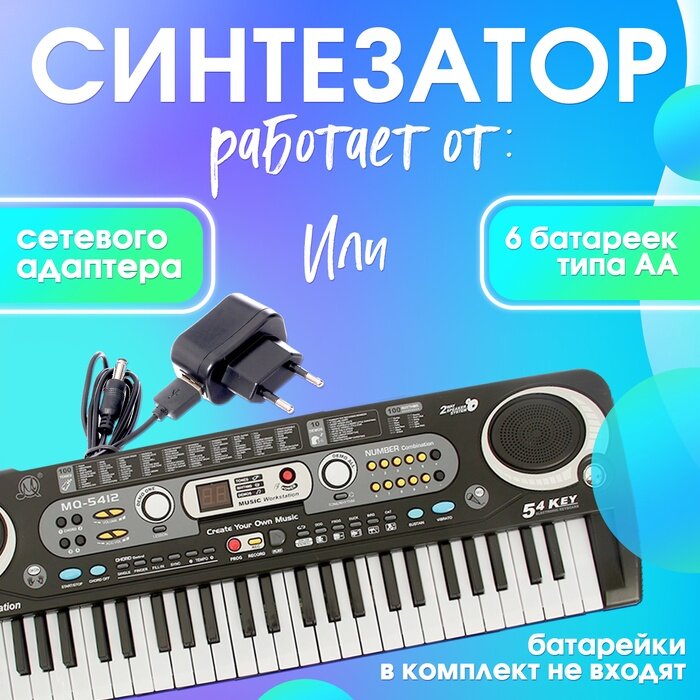 Синтезатор «Музыкальный взрыв», 54 клавиши с цифровым дисплеем, работает от сети и от батареек, адаптер в комплекте
