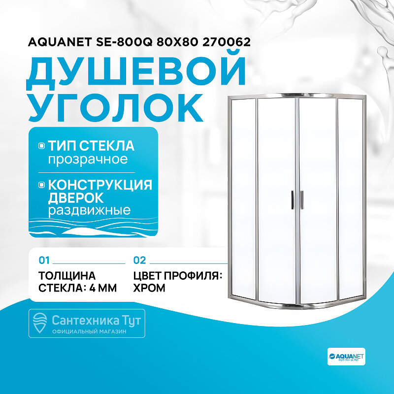 Душевой уголок Aquanet SE-800Q 80x80 270062 профиль Хром стекло прозрачное интересное: