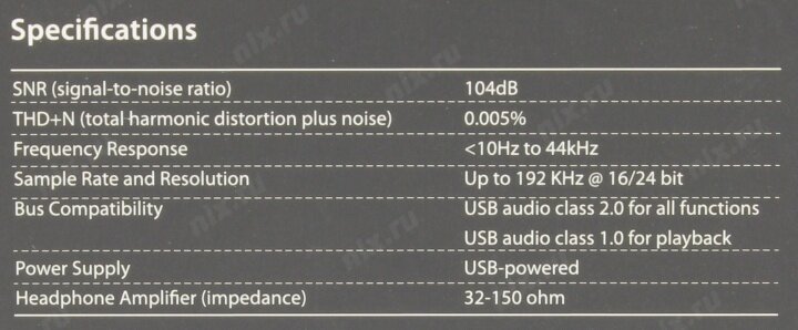 | Минусы: | Ругается с программой Sonic Studio 3. приходиться отключать USB, чтобы изменить настройки там. У меня домашняя студия, Пришлось для понижения шумов и наводок из устройства выводить "землю" и объединять с моей системой. Иначе ни как. "0db"- у них соответствует "-25db" на проф системах.... Наводки при выравнивании сигнала запредельные. Земля по аудиоканалам не работает как надо (устройство видимо имеет их две) пробуйте сами..... после всех очевидных, для электронщика дополнений , все заработало как ожидалось. Но! эта дешёвая "мыльница" совсем!!!! не HiEnd. Если есть возможность, то возьмите на время у знакомых и все проверяйте для себя. Жаль, что раздавать в кинушках 5.1 пришлось через подобное... "устройство", через встроенную звуковуху ваще не решалось (наводки не убираемые,,,, 15 метров ). Вообще к самому устройству претензий не имею, видимо его создавали для идеальных условий использования. |