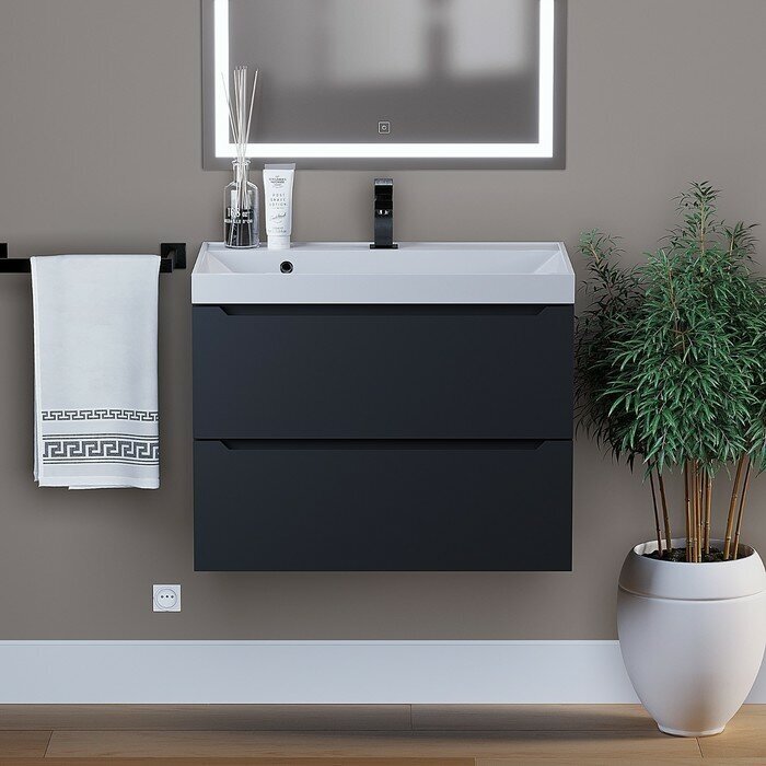 Тумба с раковиной Uperwood Tanos 70 см, подвесная, черная интересное: