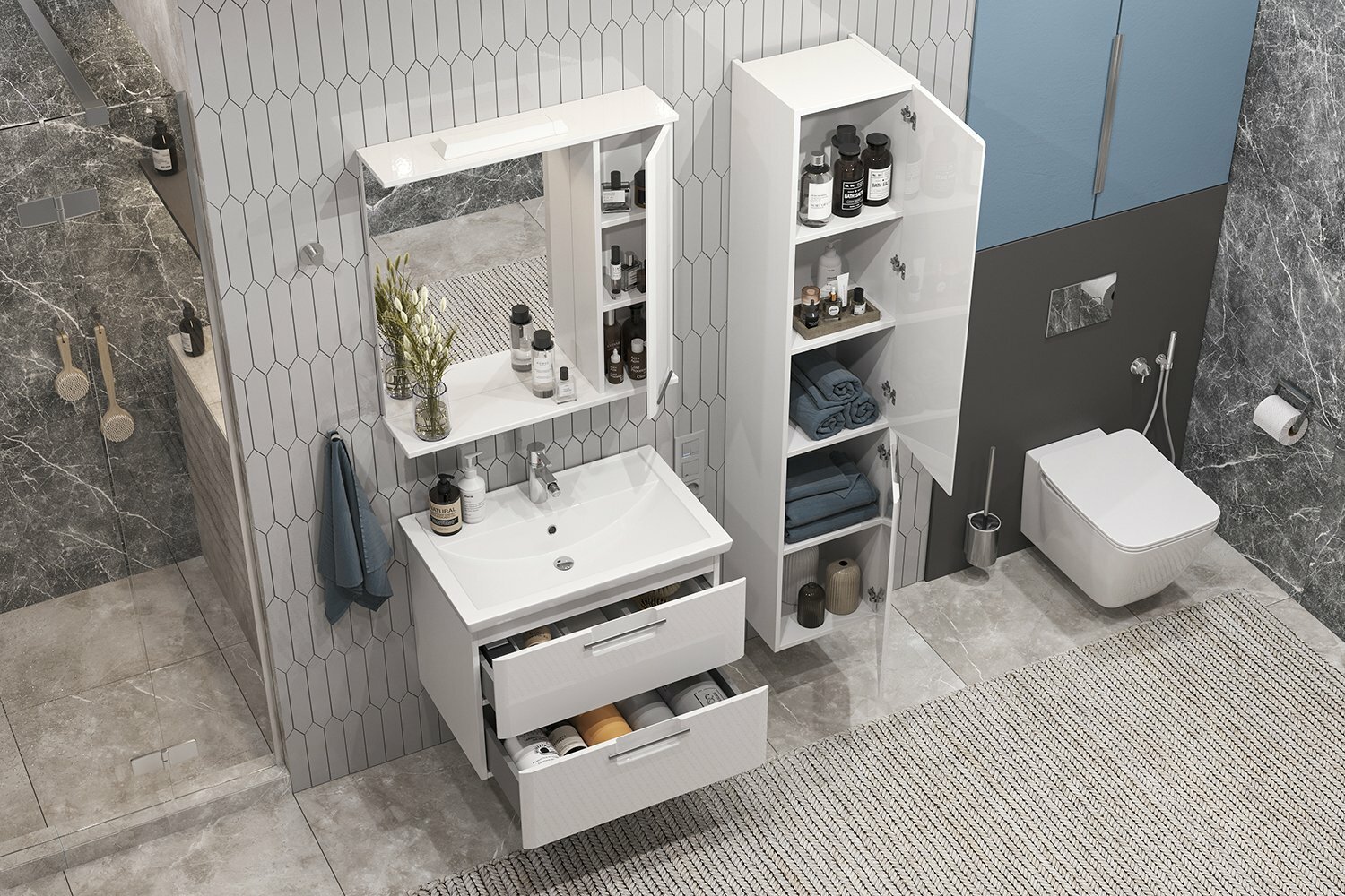 Тумба подвесная SanStar Уника 70 с раковиной Фостер 70 (комплект) для ванной комнаты белая интересное: