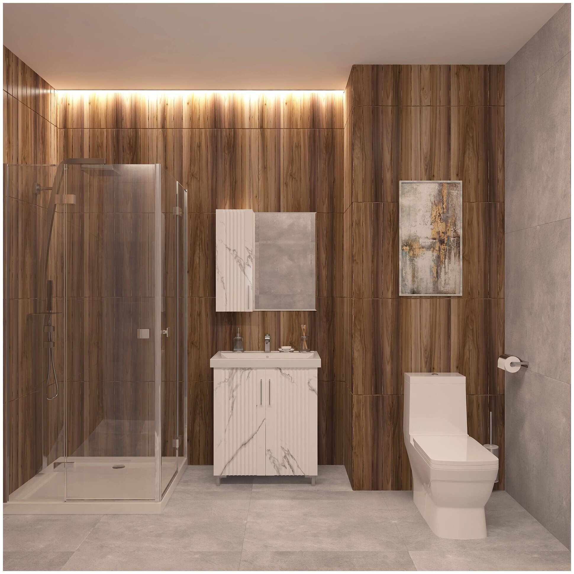 Тумба подвесная с раковиной EvaGold 75 см, набор ND44.4 белый мрамор для ванной