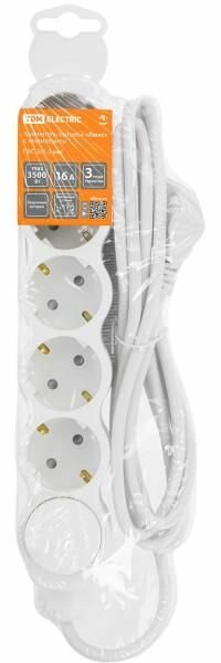 Купить TDM Люкс сет. удл. ПВС 3х1 УЛ05В 5 роз. 3 м земля, выкл, шторки 16А бел-сер SQ1303-0137