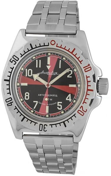 Часы наручные мужские механические с автоподзаводом Восток Амфибия 110650_steel_110, сталь 110