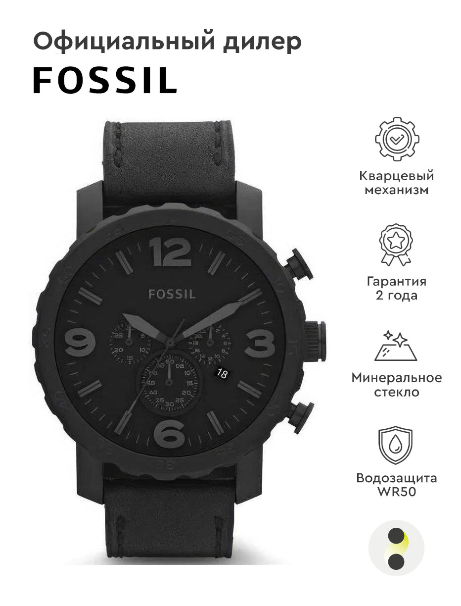 Наручные часы FOSSIL мужские Nate JR1354 кварцевые, хронограф, секундомер, водонепроницаемые, черный
