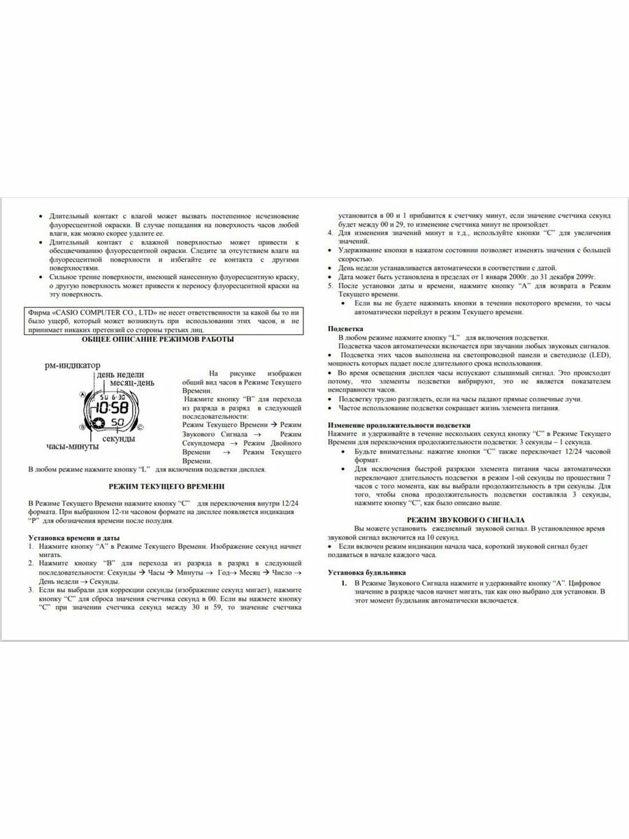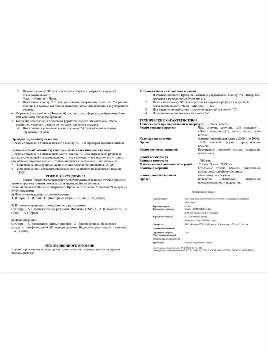 | Отображение даты и времени | вечный календарь / второй часовой пояс / отображение дня недели / отображение месяца / отображение числа |