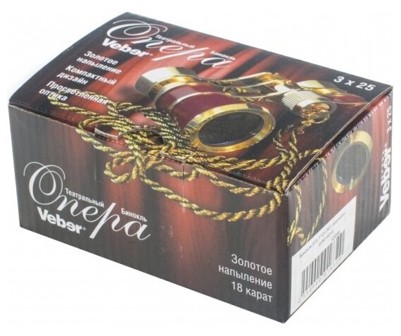 Купить Бинокль театральный Veber Opera БГЦ 3x25 с цепочкой, черный/золотой 10996_VEBER .