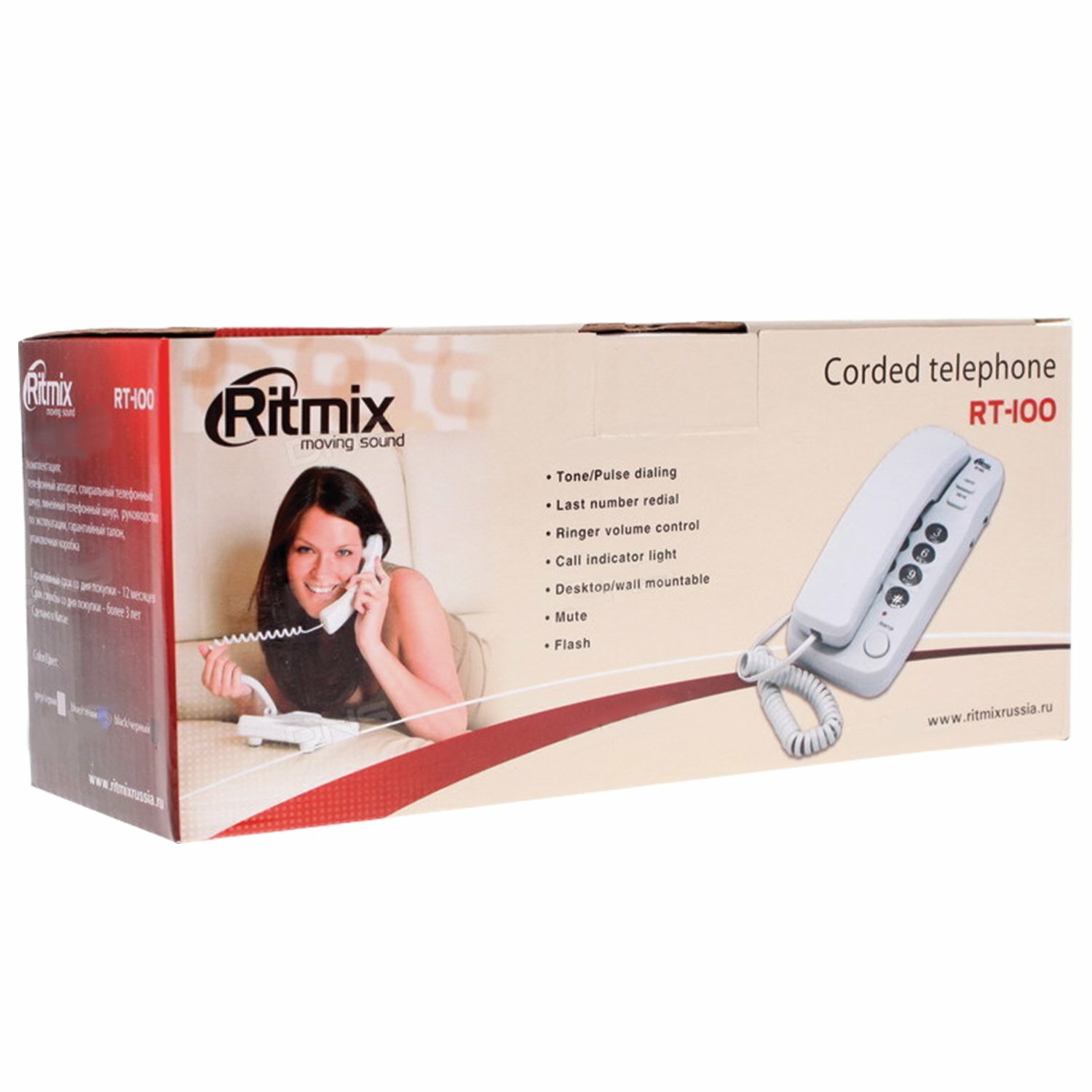 Проводные телефоны RITMIX Проводной телефон Ritmix RT-100, настольно-настенный, Hi-Low, световой индикацией, черный