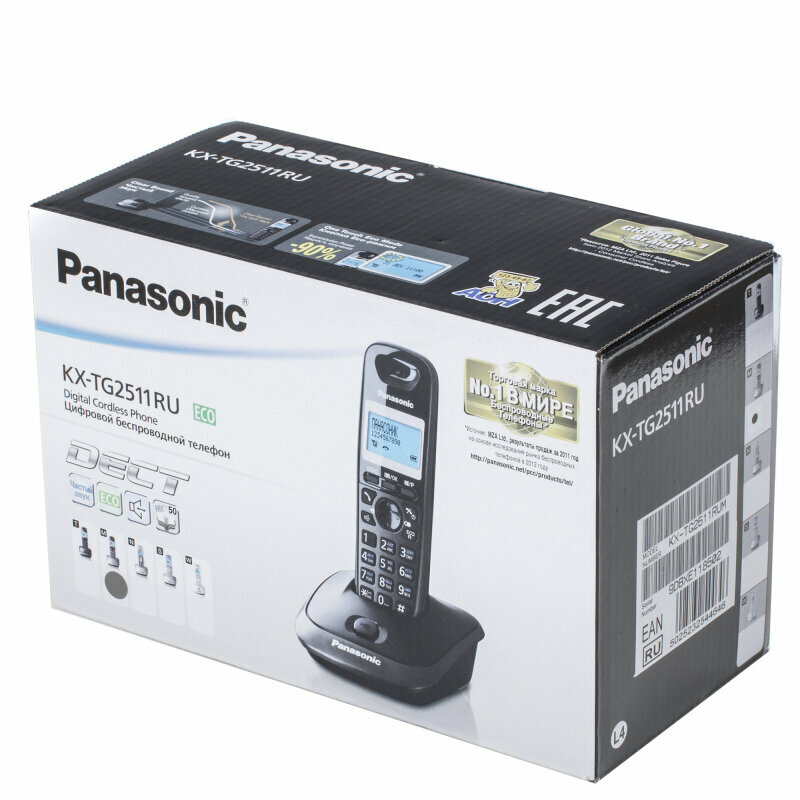 Радиотелефон Panasonic спикерфон, справочник на 50 номеров, эко-режим (KX-TG2511RUM)