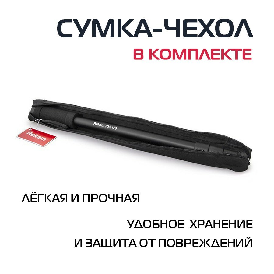 Профессиональный монопод для фотокамеры Rekam RM-120, чехол в комплекте