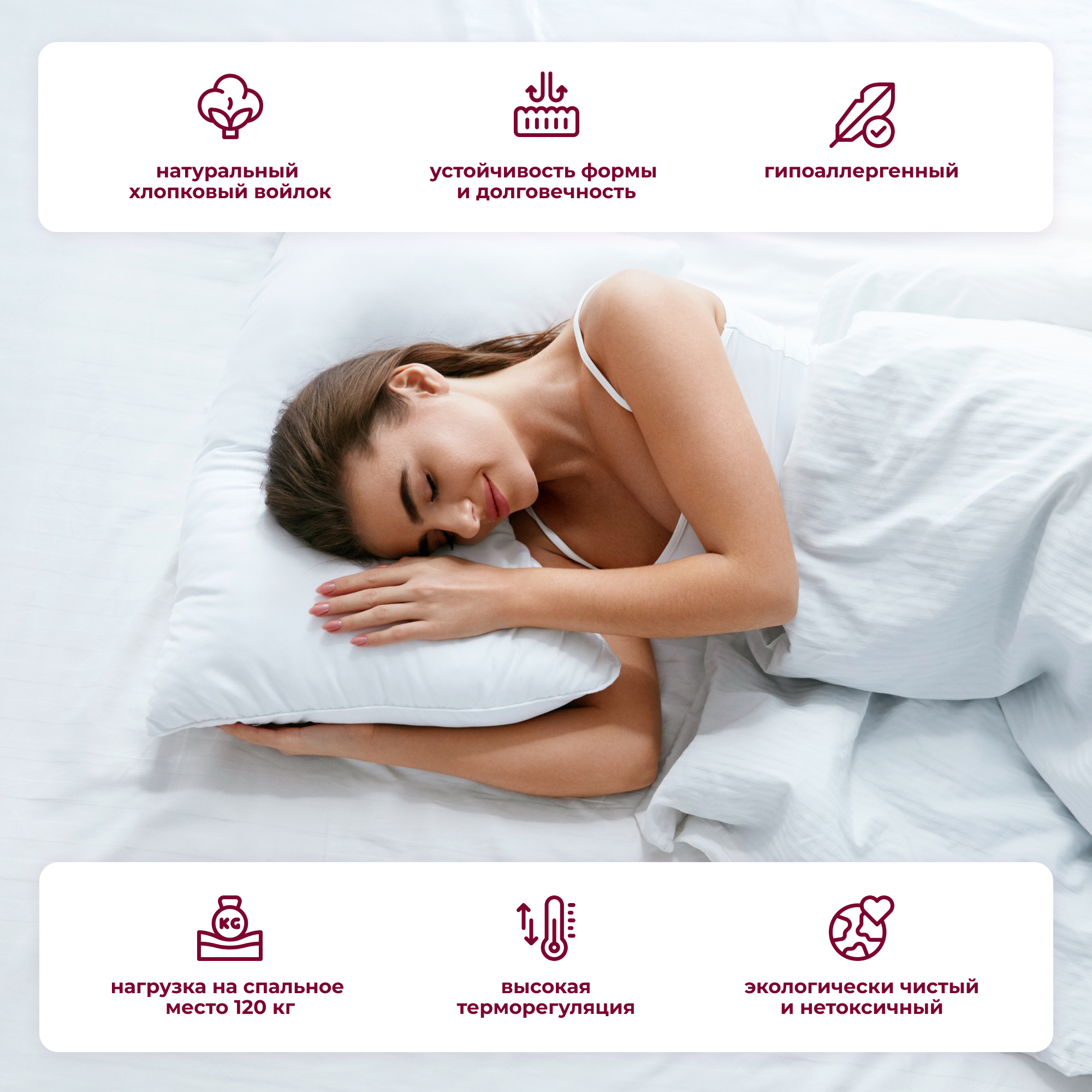| Плюсы: | Достаточно магкий, при этом удобно и спится круто |