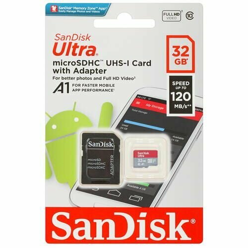 Карта памяти microSDHC SanDisk 32Gb Ultra 120MB/s SDSQUA4-032G-GN6MA, 1шт.