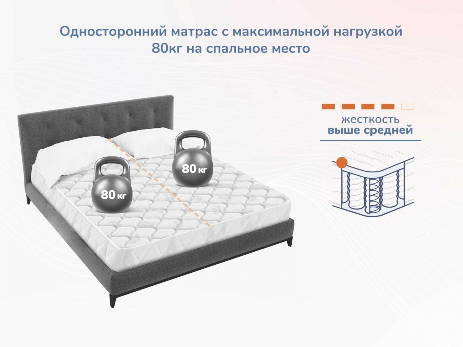 | Плюсы: | Сколько используется, до сих пор у этого матраса нет недостатков. Жёсткость одинаковая со всех сторон, разница вроде есть, но по телу она вообще не ощущается. Допустимый вес на одно место чуть больше 100 кг. Мы намного меньше этого веса, поэтому матрас под нами не прогибается. Поверх чехла мы используем наматрасник, чтобы не испортить верхнее покрытие. |