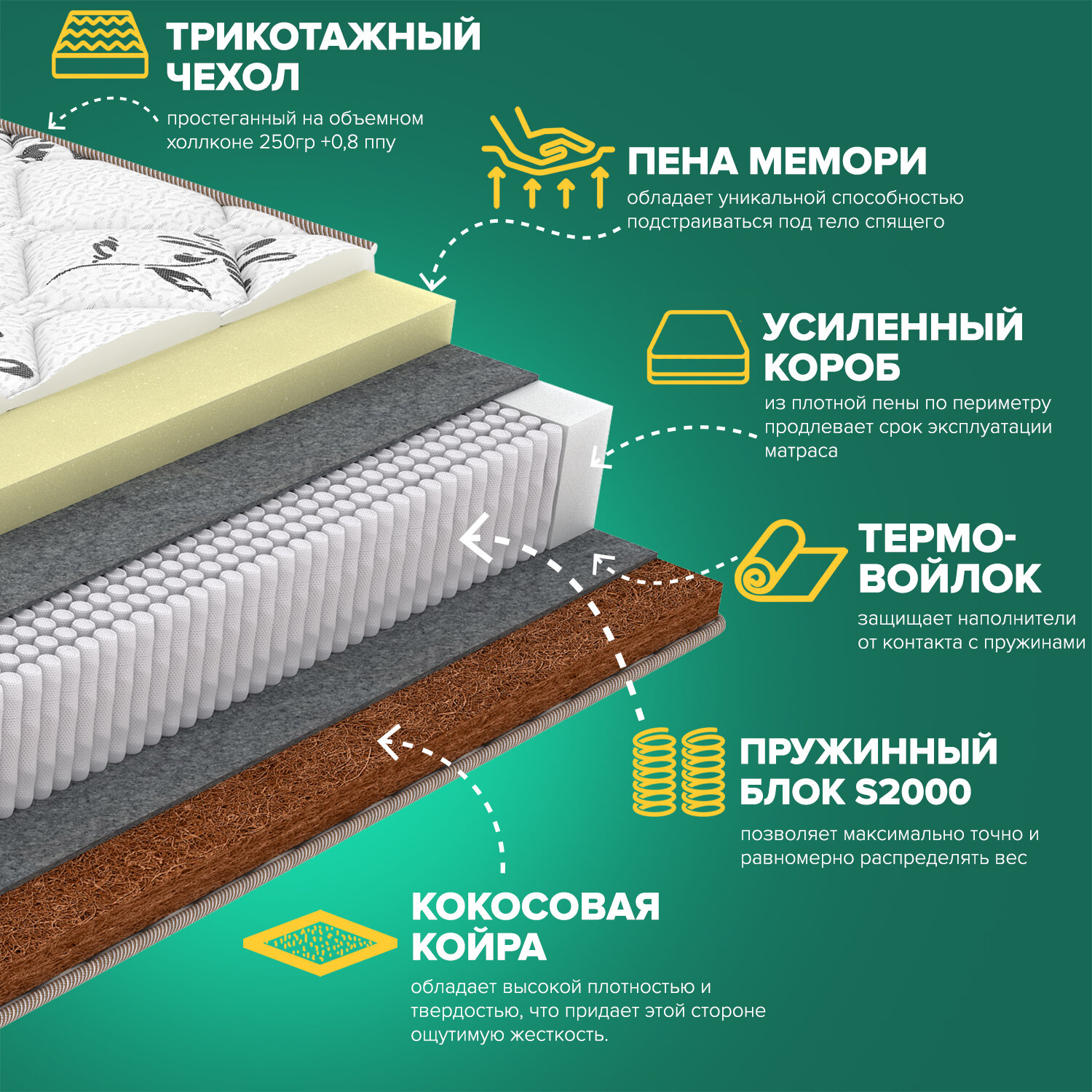 СохранитьМатрас Sleeptek Lux Memo Cocos 160х190 интересное: