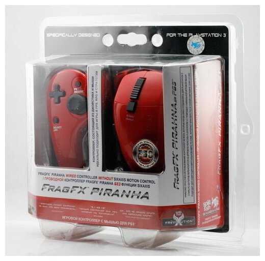 Игровой контроллер с мышью для PS3 Джойстик FragFX Piranha красный (проводной комплект)