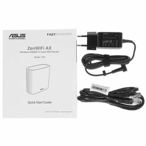 ASUS XT8 (W-1-PK) // роутер, из 1 точек доступа, 802.11b/g/n/ac/ax, до 574 + 4804Мбит/c, 2,4 + 5 гГц, белый ; 90IG0590-MO3G30