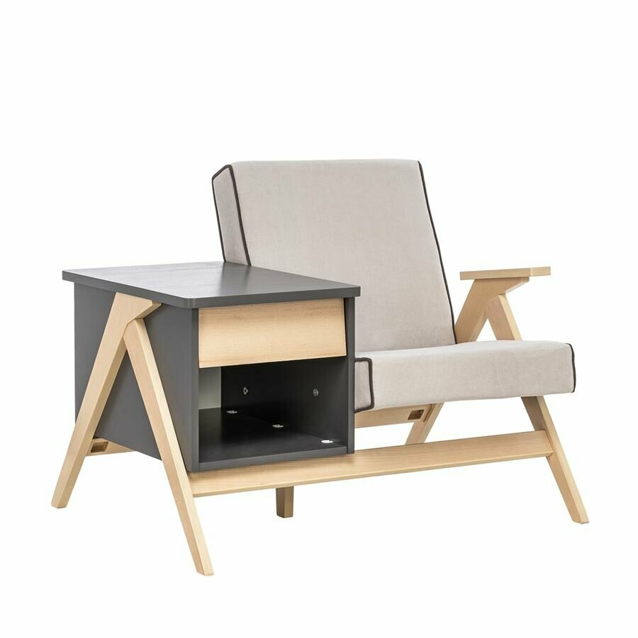 Купить Сканди комбо | кресло+тумба | | Натуральное дерево | серый ясень | ткань Verona light grey | кант V