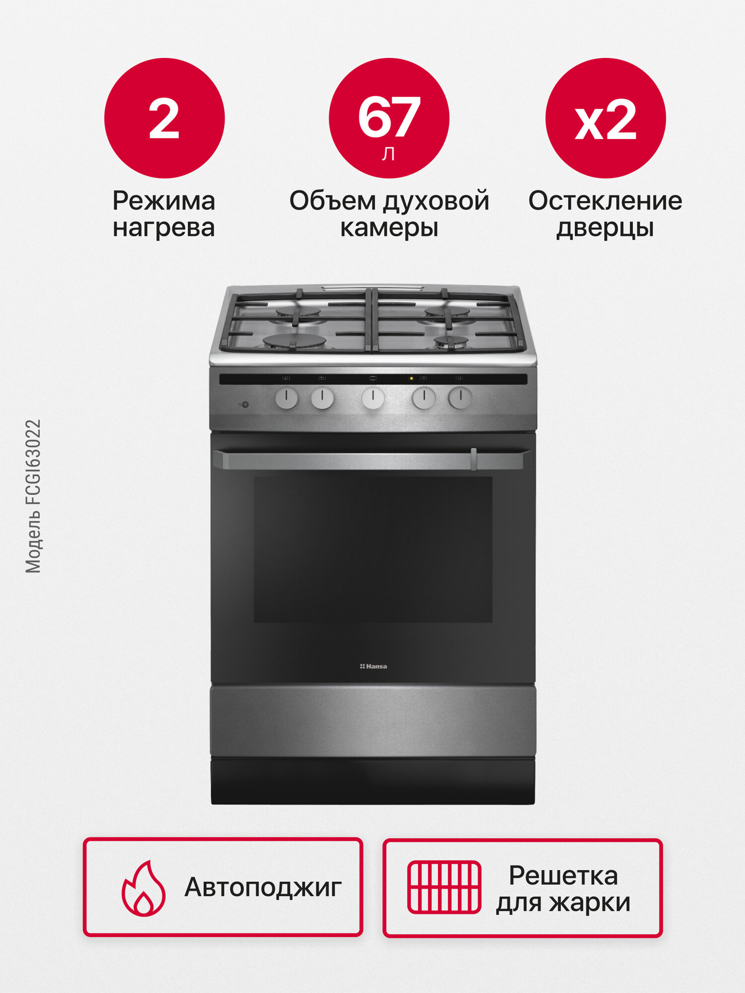 Плита газовая Hansa FCGI63022, нержавеющая сталь