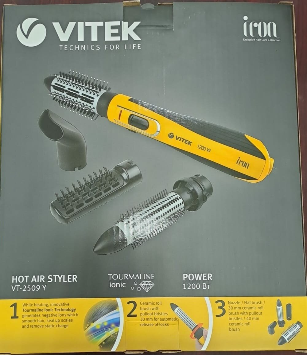 Ниже Вы можете прочитать отзывы на Фен-щетка VITEK VT-2509, черный/желтый, ознакомится с подробными характеристиками, посмотреть интересные обзоры и фотографии на Фен-щетка VITEK VT-2509, черный/желтый.