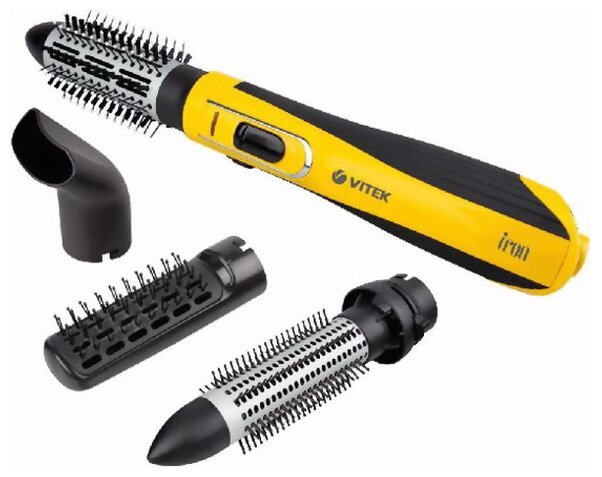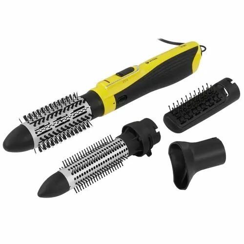 Фен-щетка Vitek VT-2509 Y желтый/черный, желтый/черный, 1200 Вт, диаметр - 30 мм, 40 мм, турмалиновая ионизация, насадок - 4 шт, шнур - 1.8 м