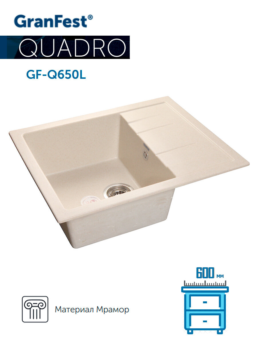 Кухонная мойка GranFest Quadro Gf-q-650l бежевый .
