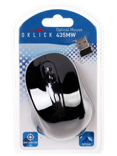 Мышь компьютерная Oklick "435mw", черная, оптическая, 1600 dpi, беспроводная, usb (435MW)