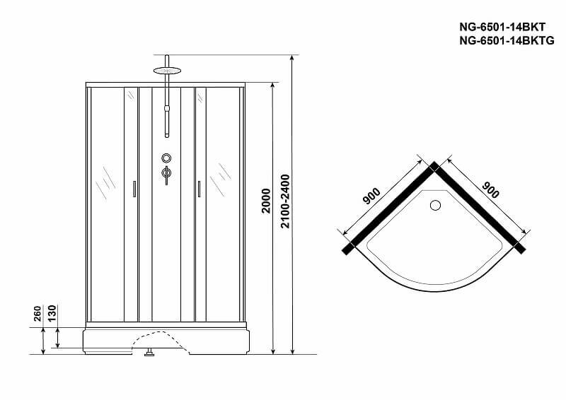 Душевая кабина Niagara NG-6501-14BKT 90х90х210-240
