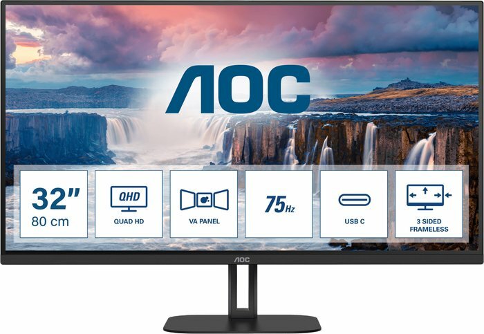 31,5" AOC Q32V5CE 2560x1080@75Гц VA LED 16:9 4(1)ms HDMI DP USB-C 3.2 4*USB 3.2 20M:1 3000:1 178/178 300cd Tilt 2*Speakers5w Black интересное:
