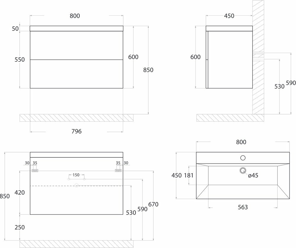 Тумба для ванной комнаты квадро 1-65