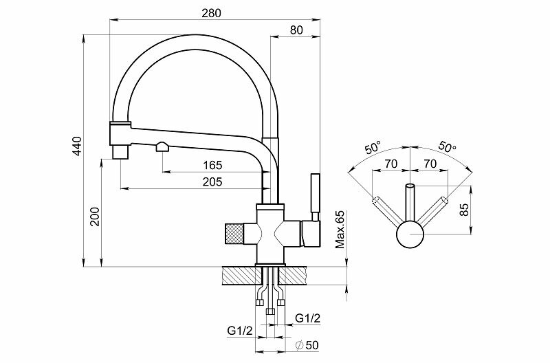 Смеситель для кухни Granula GR-0075 графит, с подключением к фильтру