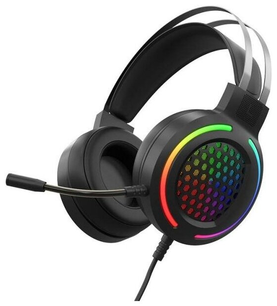 Cbr Наушники CHP 827 Armor, Компьютерная гарнитура проводная стерео, игровая, полноразм. наушники, микрофон с шумоподав., USB 2хмини-джек 3,5 мм, LED-подсветка, эргоном. дизайн, длина каб. 2,1 м, цвет чёрный