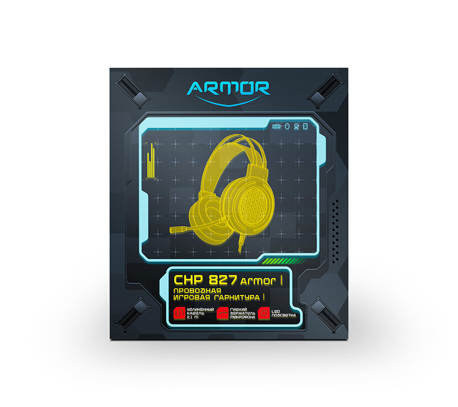 Гарнитура компьютерная CBR CHP 827 Armor, игровая, микрофон с шумоподавлением, USB, 2-х мини-джек 3,5 мм, LED-подсветка, каб. 2,1 м, чёрный интересное: