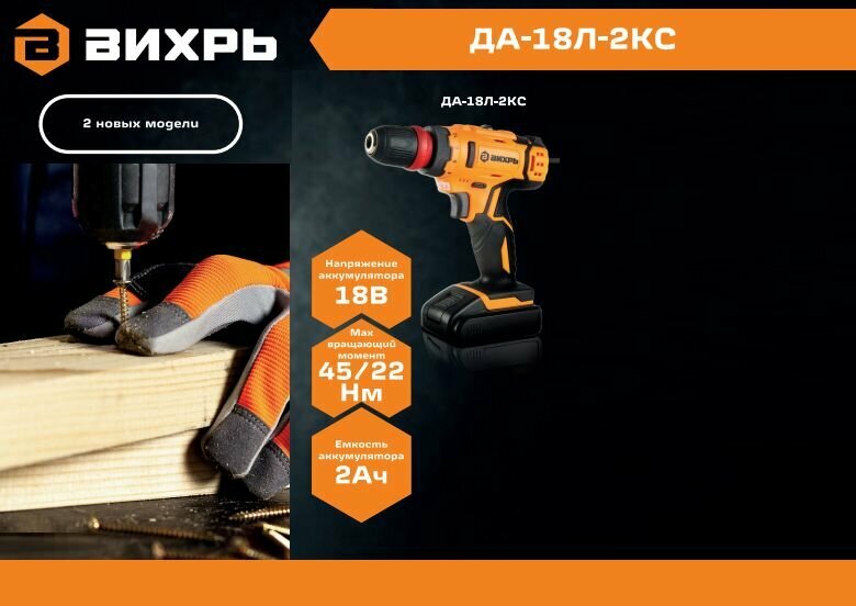 СохранитьДрель-шуруповерт аккумуляторная ДА-18Л-2КC (2,0 А/ч) Вихрь интересное: