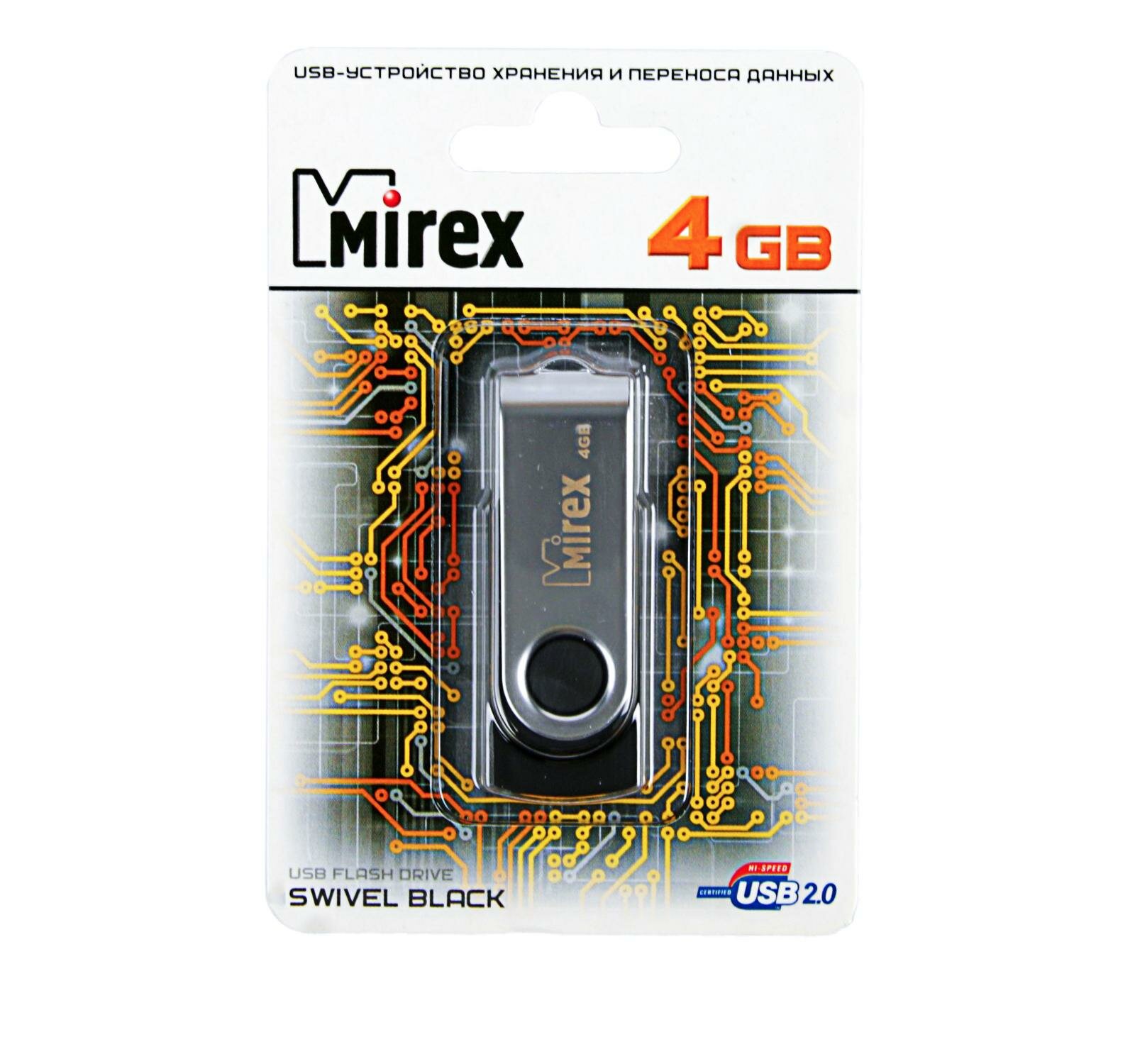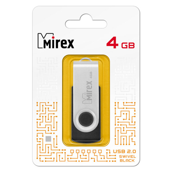 Флешка Mirex 4GB Swivel, USB 2.0, черный