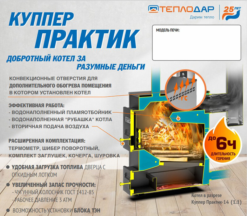 Отопительный котел Куппер Практик-16 В на твердом топливе (Черный/Серый, 106 кг) интересное: