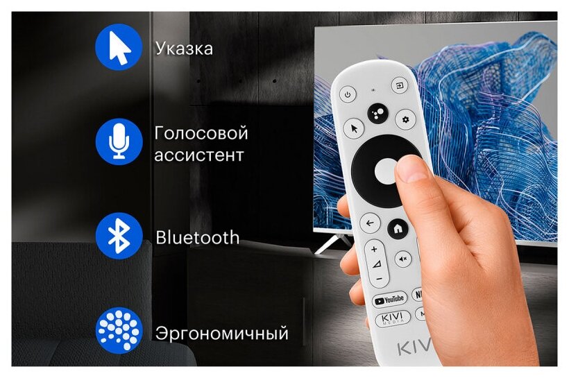 | Отзыв: | Впечатления от телевизора хорошие. Диагональ достойная 50, есть разъемы для внешних носителей и интерфейсы - Ethernet - RJ-45, вход HDMI x 3, слот CI. Телевизор идет на Android TV, даже мне не составила труда разобраться с этой операционной системой. Есть приложение KIVI Media, благодаря которому нашла свою фитнес-тренировку и дома занимаюсь. Как по мне, вполне достойная модель. |