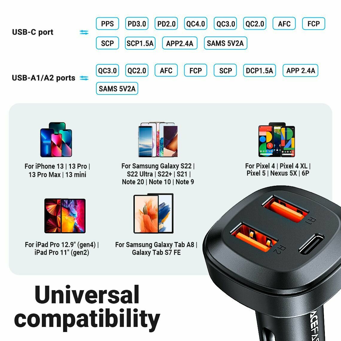 Ниже Вы можете прочитать отзывы на Автозарядка ACEFAST B9 66W 2USB-A + USB-C черная, ознакомится с подробными характеристиками, посмотреть интересные обзоры и фотографии на Автозарядка ACEFAST B9 66W 2USB-A + USB-C черная.