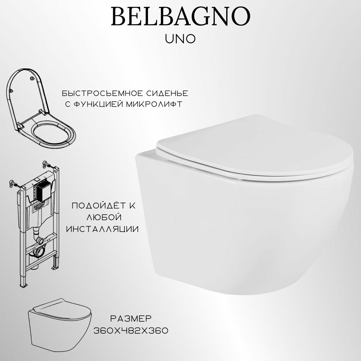 Инсталляция для унитаза Geberit Duofix Delta 458.124.21.1 + унитаз подвесной безободковый с сиденьем BelBagno UNO BB3105CHR/SC интересное: