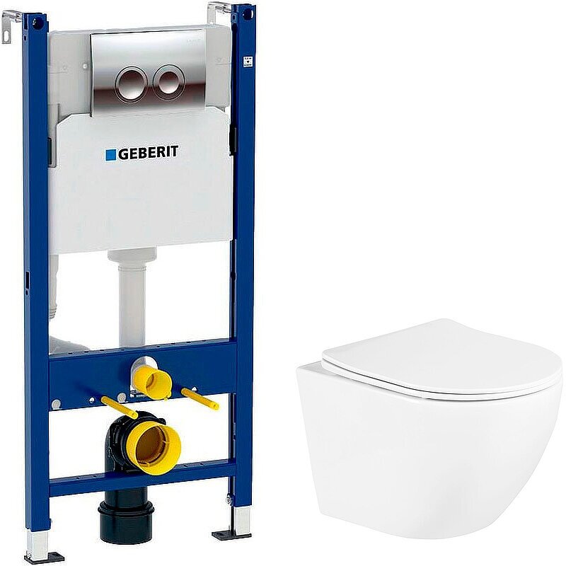 Купить Инсталляция для унитаза Geberit Duofix Delta 458.124.21.1 + унитаз подвесной безободковый с сиденьем BelBagno UNO BB3105CHR/SC