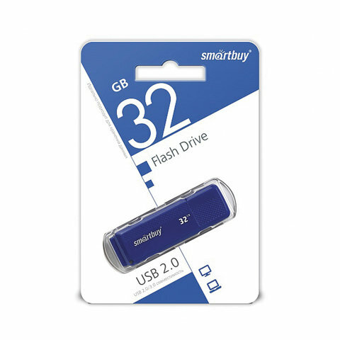 Флешка Smartbuy 32GBDK-B, 32 Гб, USB2.0, чт до 25 Мб/с, зап до 15 Мб/с, синяя